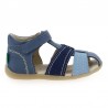 Voilà les premières Kickers de votre bonhomme ! Adorables et originales, ces chaussures estivales s’habillent d’un cuir nubuck au camaïeu vert ou bleu. Comme toujours, la marque Kickers soigne ses créations sous toutes les coutures. En effet, tous les modèles Kickers allient avec brio style, confort et qualité. Les surpiqûres apparentes et les découpes créatives renforcent leur beau petit look. La bride Velcro assure un réglage parfait, ainsi qu’un bon maintien du pied. Marine ou Kaki, ces sandales Kickers seront parfaites pour les vacances !