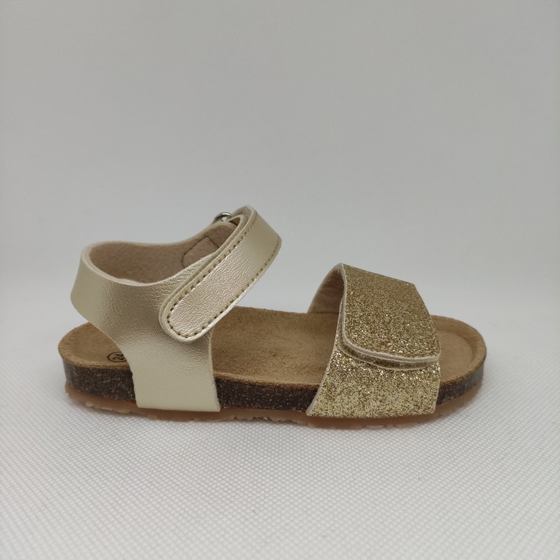 Le modèle Kamelia rose et doré comporte une fermeture à scratch et une semelle extérieure en thermopropylène.
